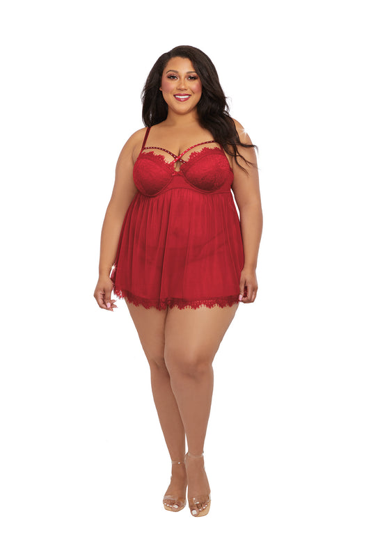 Mi Amor Push-Up Babydoll Lingerie - Red
