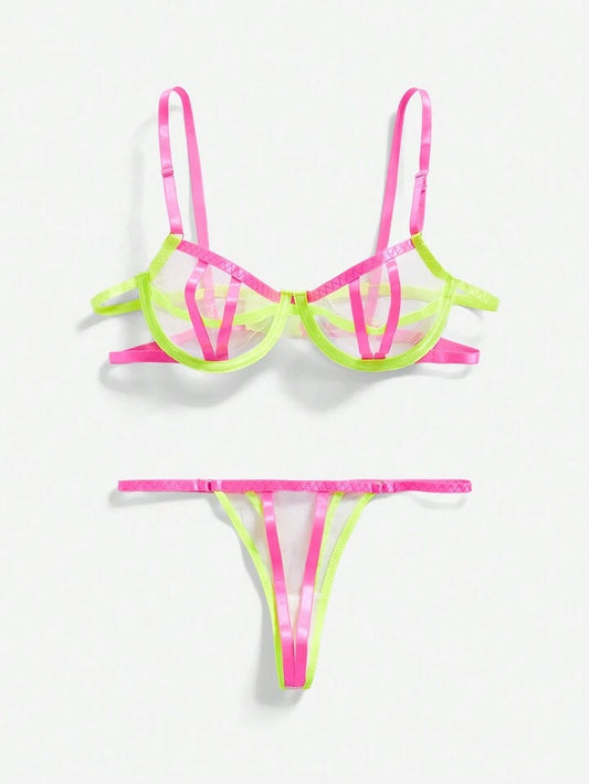 Naughty Neon Glow Lingerie Bra & Panty Set