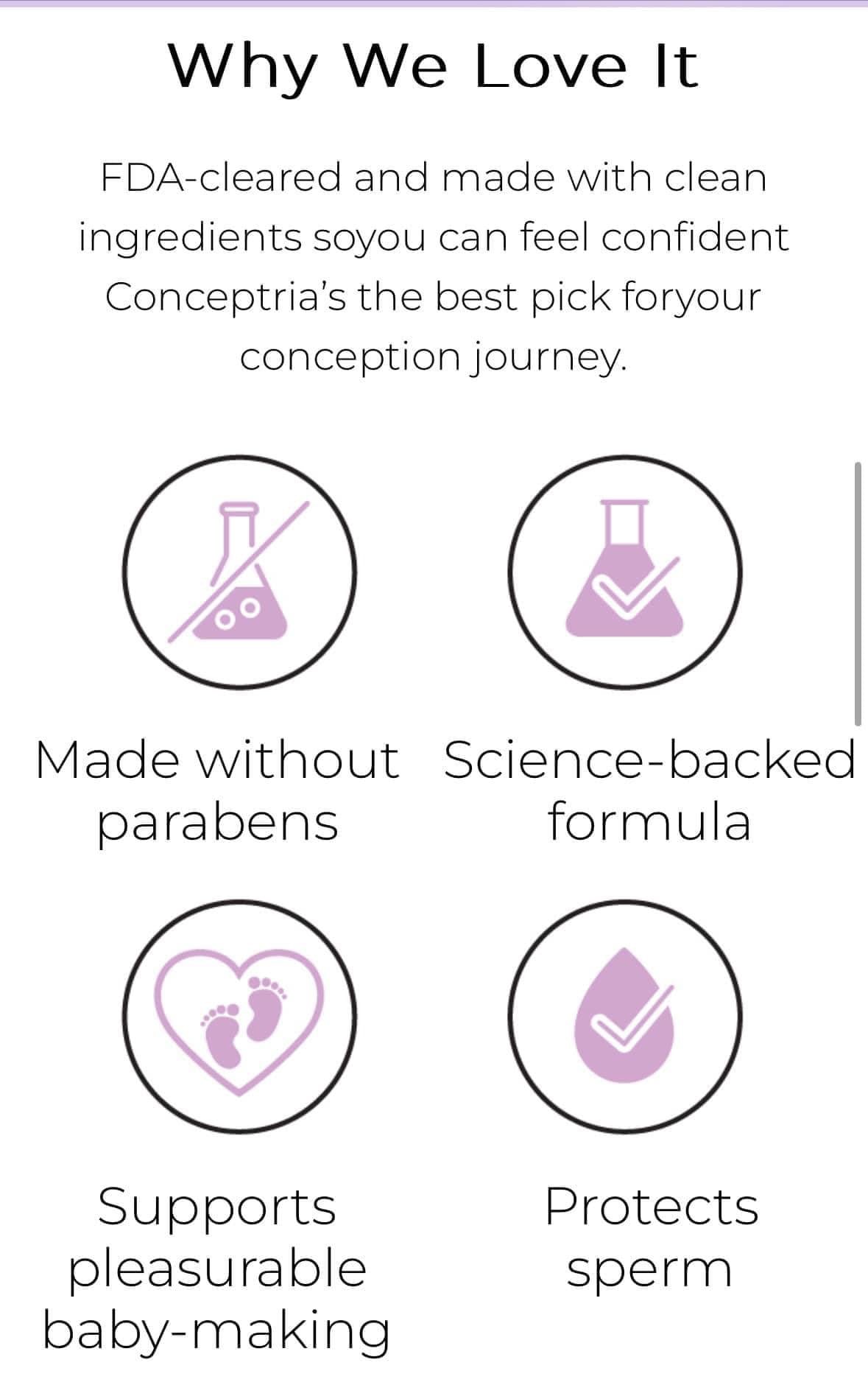 This lubricant is also FDA cleared and made with clean ingredients so you can feel confident Conceptria’s the best pick for your conception journey.