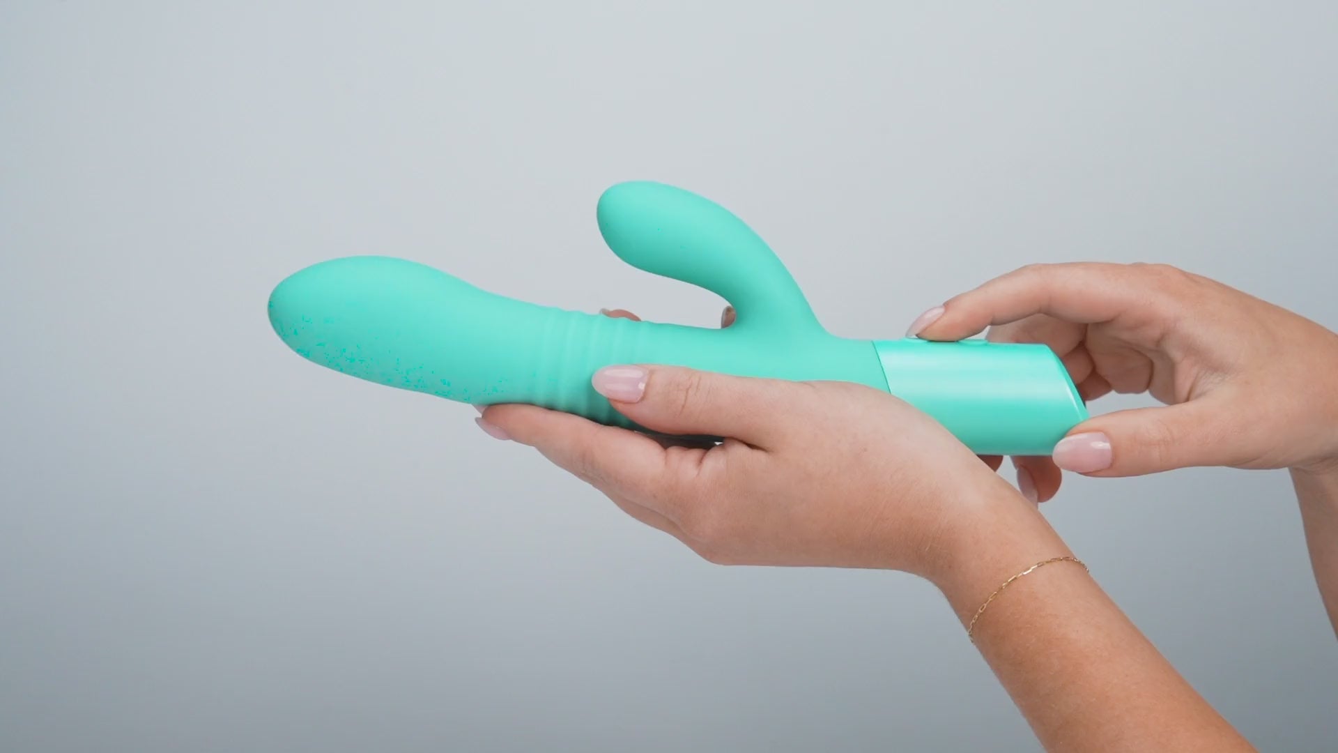 This dual-action, deep-thrusting vibrator takes pleasure to the next level with 20 powerful functions and a soft, supple feel that’s irresistible to the touch. The shaft features 3 speeds and 7 patterns of combined thrusting and vibration to deliver the ultimate satisfaction, while the flexible clitoral teaser boasts 3 speeds and 7 patterns of vibration to help take your experience to new heights. Both the shaft and teaser are independently controlled so you can find your perfect combination – and satisfy your every craving.