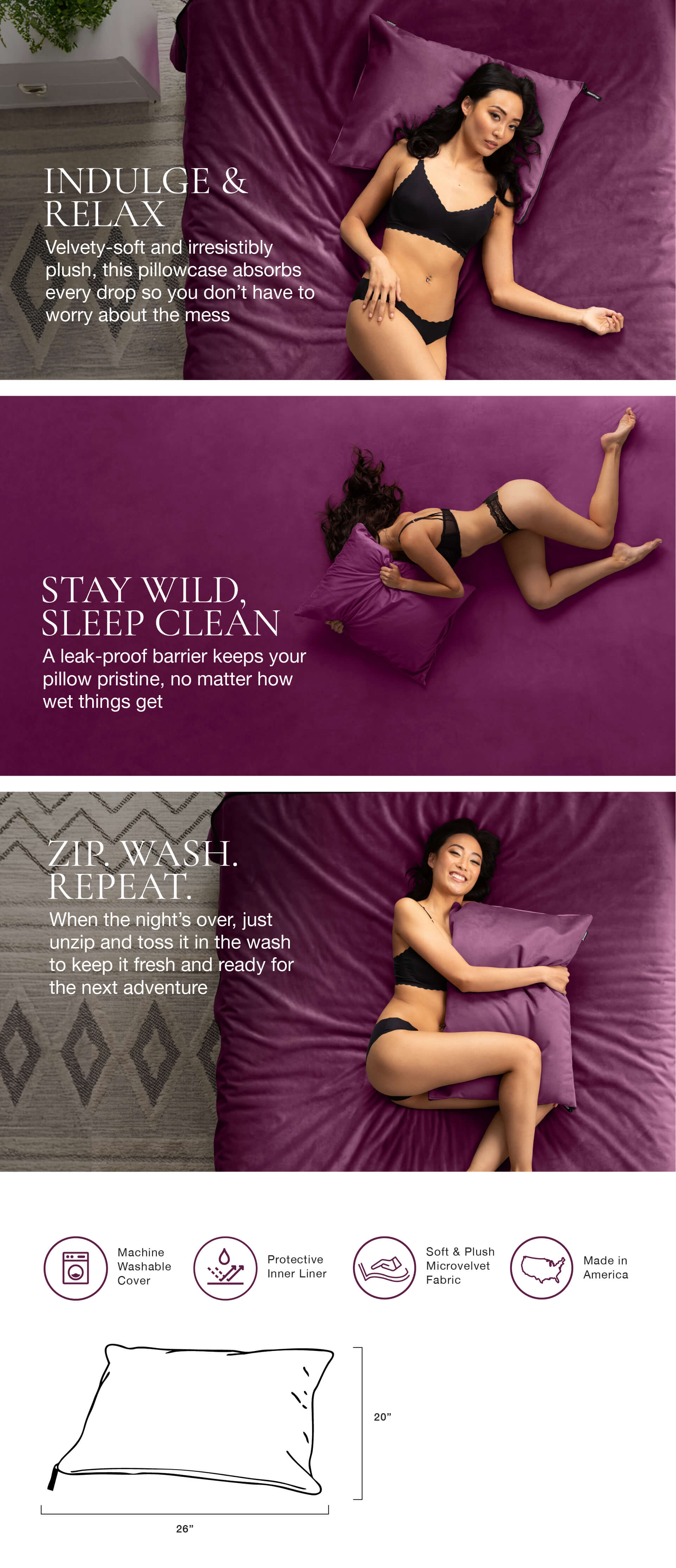 The Fascinator Pillowcase turns your everyday pillow into a playground. Made with the same velvety-soft microvelvet as our best-selling Fascinator Throw, this waterproof pillowcase is designed to catch every drop while keeping your pillow clean and protected. Slip it on, zip it up, and indulge in carefree pleasure—whether it’s solo time or shared adventure. When the fun is done, just unzip and toss it in the wash for a fresh, ready-to-go reset.