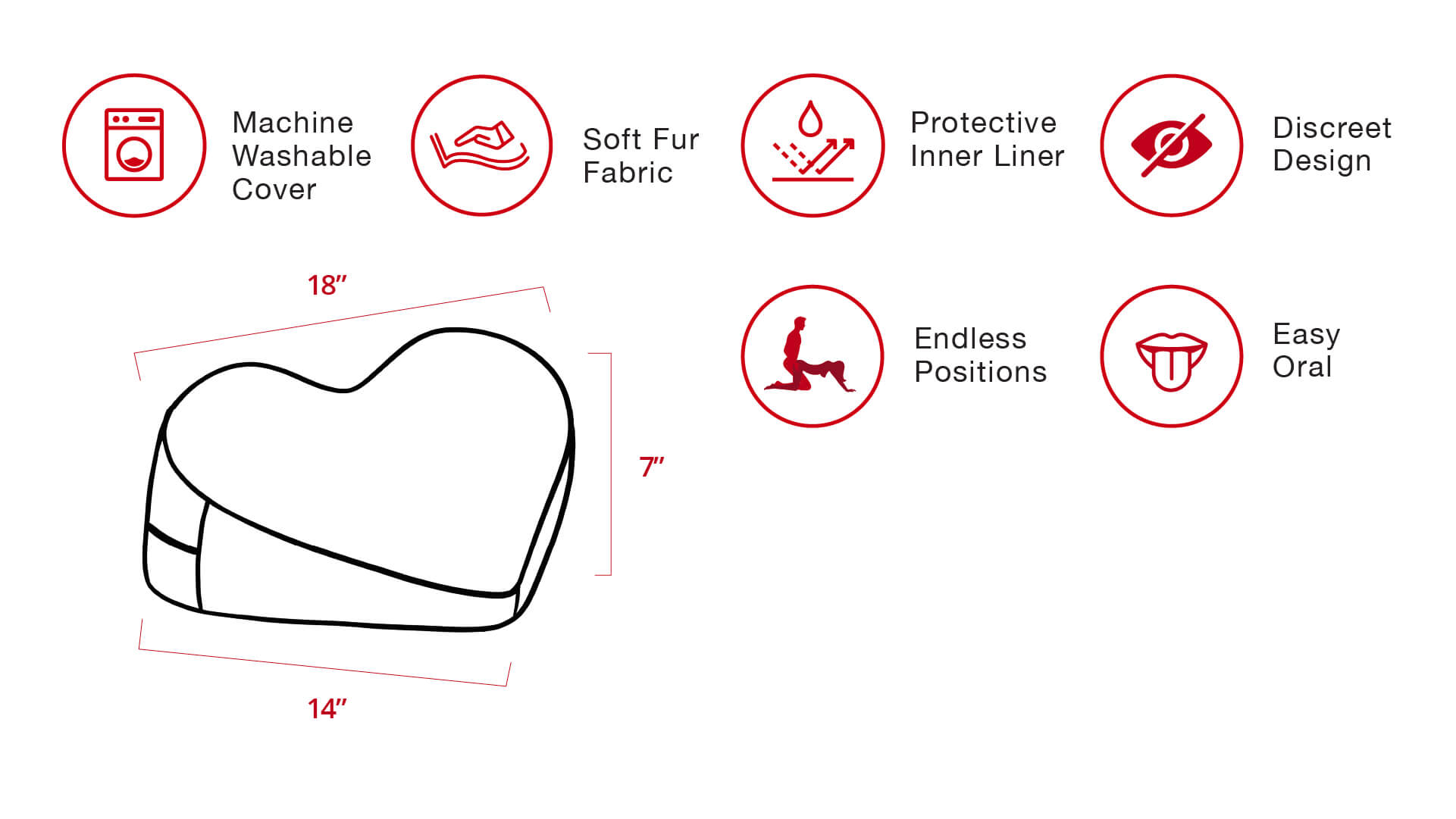 Crafted from high-density foam, the Heart Wedge prevents sinking into mattresses and provides the stability you need for prolonged play. A soft, removable cover feels smooth against bare skin, and the moisture-resistant liner keeps the foam protected for years of enjoyment. Whether you’re looking to refresh old positions or add a little fun to foreplay, the Heart Wedge delivers comfort and passion in equal measure.