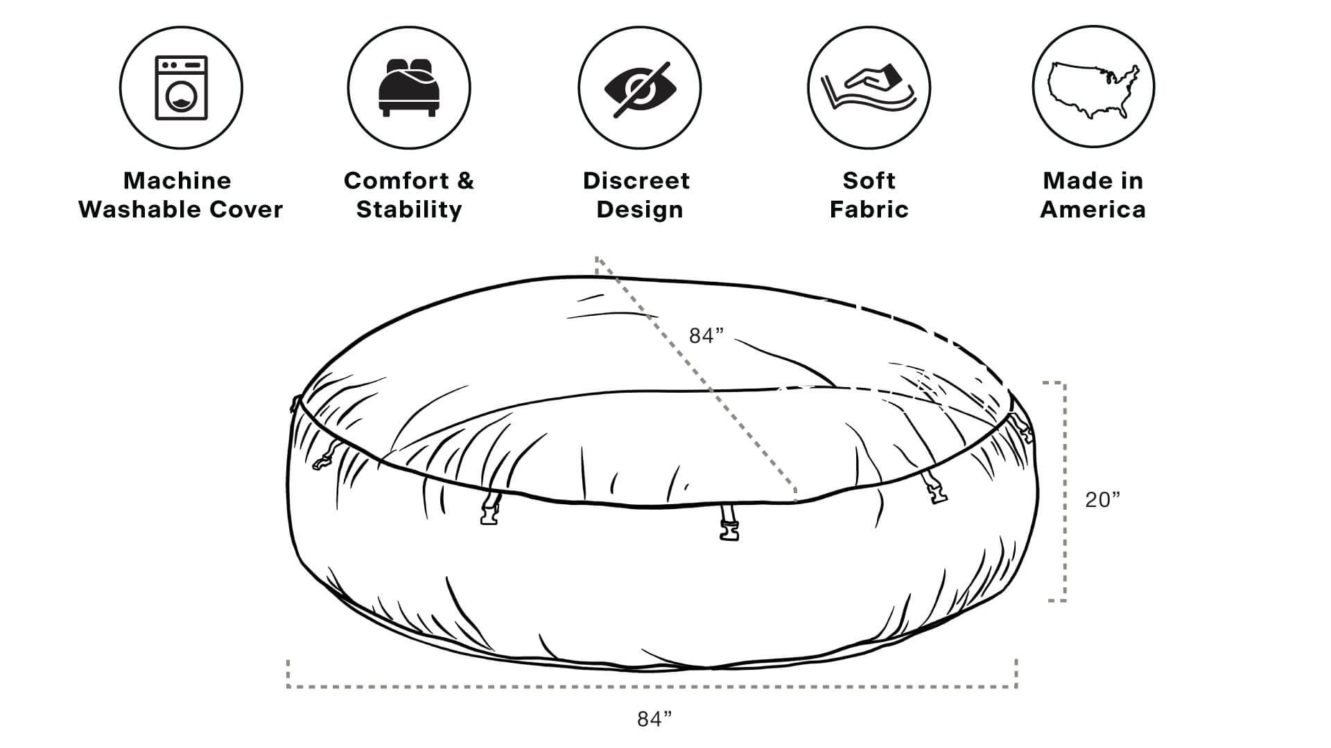 - Expansive 7-foot diameter for unrestricted play, cuddling, or sensual sprawl